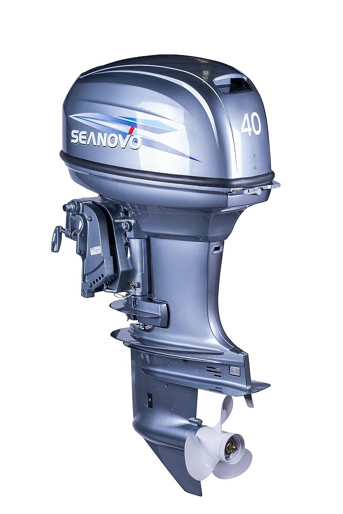 Motor EFI 40HP de 4 tiempos (3 cilindros) de pata larga Seanovo. Inyección electrónica. Dirección asistida. Pata Larga acoplada perfectamente a la altura del espejo.