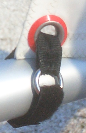 Clew strap that’s used on the ILCA and other similar boats. It holds the clew of the sail to the boom while allowing the sail to slide as you adjust your outhaul. This clew strap features velcro closure with easy adjustment. Fabricado para Intensity Sails.