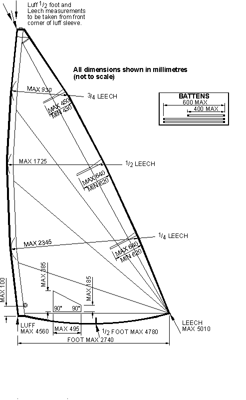 La tela es es un Poliester de 3.7 oz de alto Performance. Es una tela de alto performance queha sido terminada con resinas capaces de vistir apropiadamente el mástil Laser. “(160gm European weight medium finish cloth).” 5.76 Sq Meters Sail Area